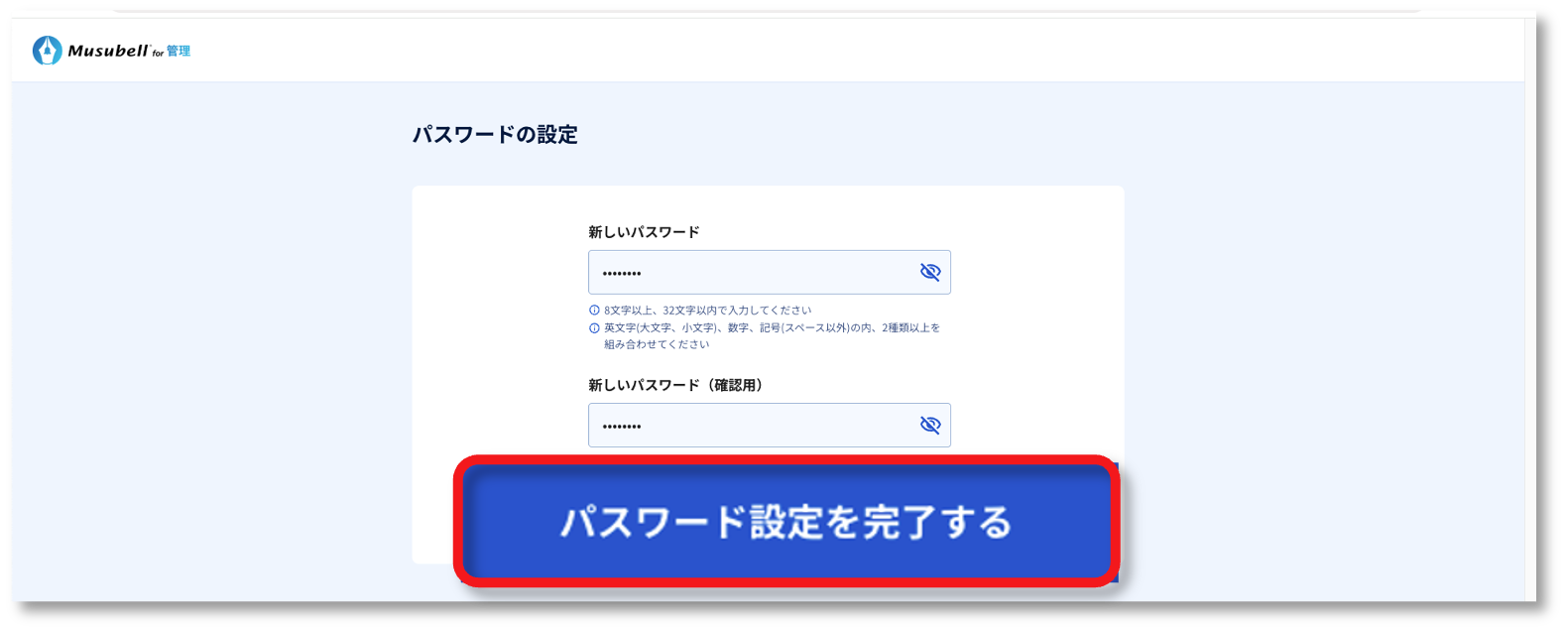 ②登録したいパスワードを入力し、[パスワード設定を完了する]を押します。