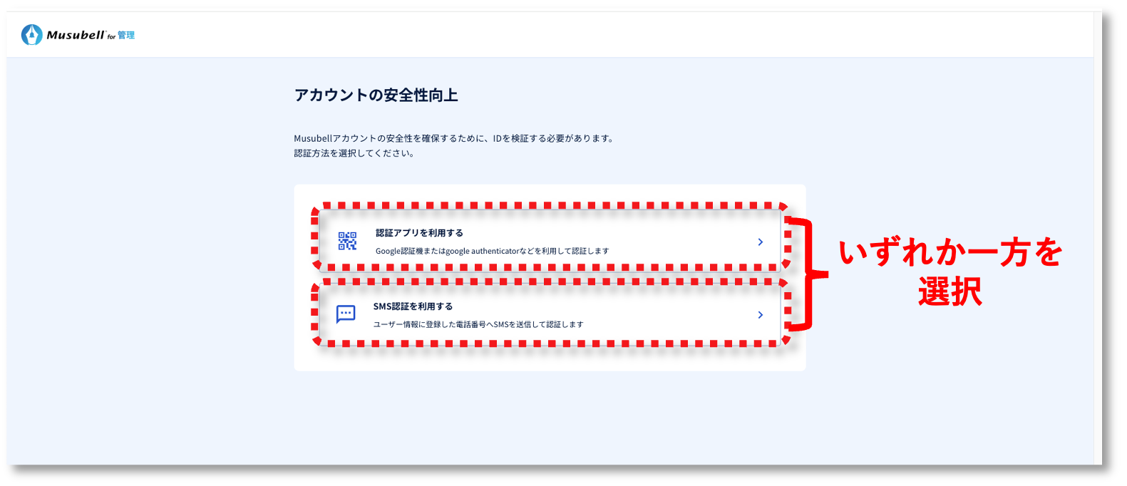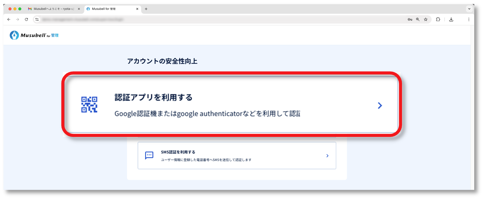 Musubellをご利用いただくために、最初にユーザー登録と2要素認証の設定をお願いいたします。