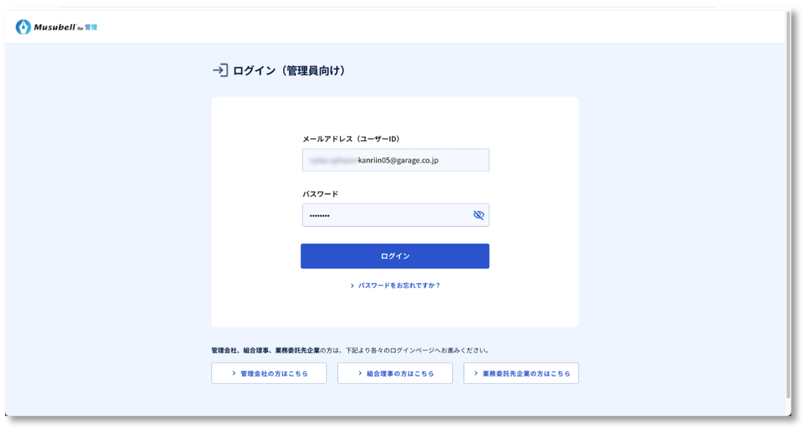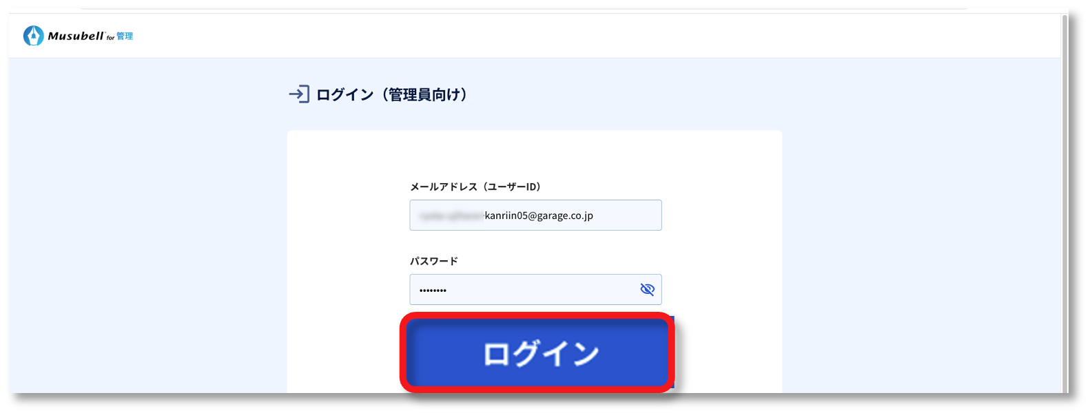 ■ログイン画面 URL:https://management.musubell.com/supervisor/login